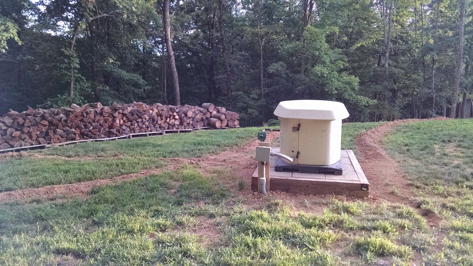 Last week we decided to move the generator. While it was the quietest generator available (Cummins 20K Propane), it could still be heard from the patio. I spoke with the propane supplier and had them exchange the 500 gallon tank with a 1000 gallon tank. While bringing the new tank I also had them install it farther away from the cabin. With the proposed location being about a 150 feet away, we took the time to build a pad that would make it easier to service as well.